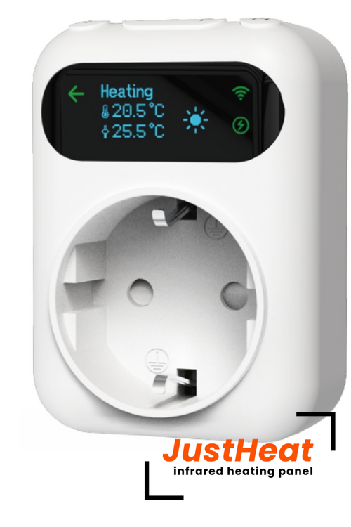 Voor het ook vrijstaand gebruiken van de het JustHeat infraroodpaneel bestelt u eenvoudig de fraaie paneel voetset mee voor een veilige stabiele opstelling. Met de separaat te bestellen WiFi stekker thermostaat regelt u eenvoudig op de stekker of via de gratis APP de ruimte temperatuur of zet u het paneel draadloos AAN/UIT.
